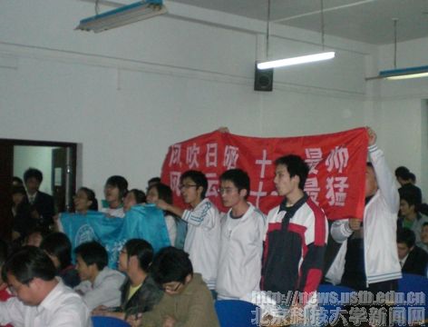 | 10月23日晚6时,2007——2008学年度材料学院优秀班级答辩会在金物楼329教室正式召开。出席本次答辩会的评委嘉宾有学院党委副书记李帅老师、团委书记李磊老师、各年级辅导员以及学生代表们。整个答辩会主要分为班级展示和评委提问两个环节。 本次答辩会共有16个班级参加。其中05级有03、09、12三个班。他们通过PPT展示,介绍了三年内在学习、课外文体活动中取得的种种成绩,每个班都不乏保研、直博、出国的优秀人才。